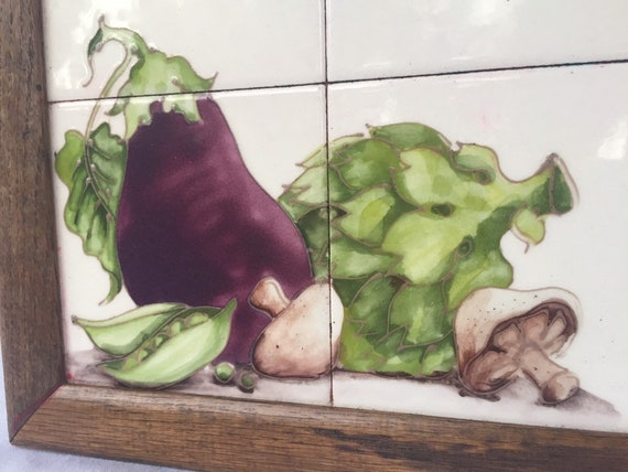 Vintage Tile Note Memo Board Ceramic Tile Wood Frame Fruits