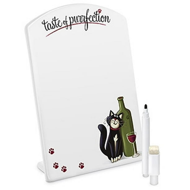 Ceramic Dry Erase Standing Memo Board Cat Wine Theme Home Gift