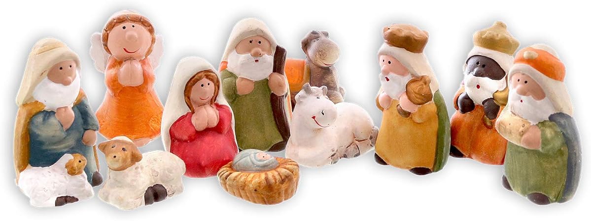 Gisela Graham Ceramic 11 Piece Ceramic Christmas Nativity Set With