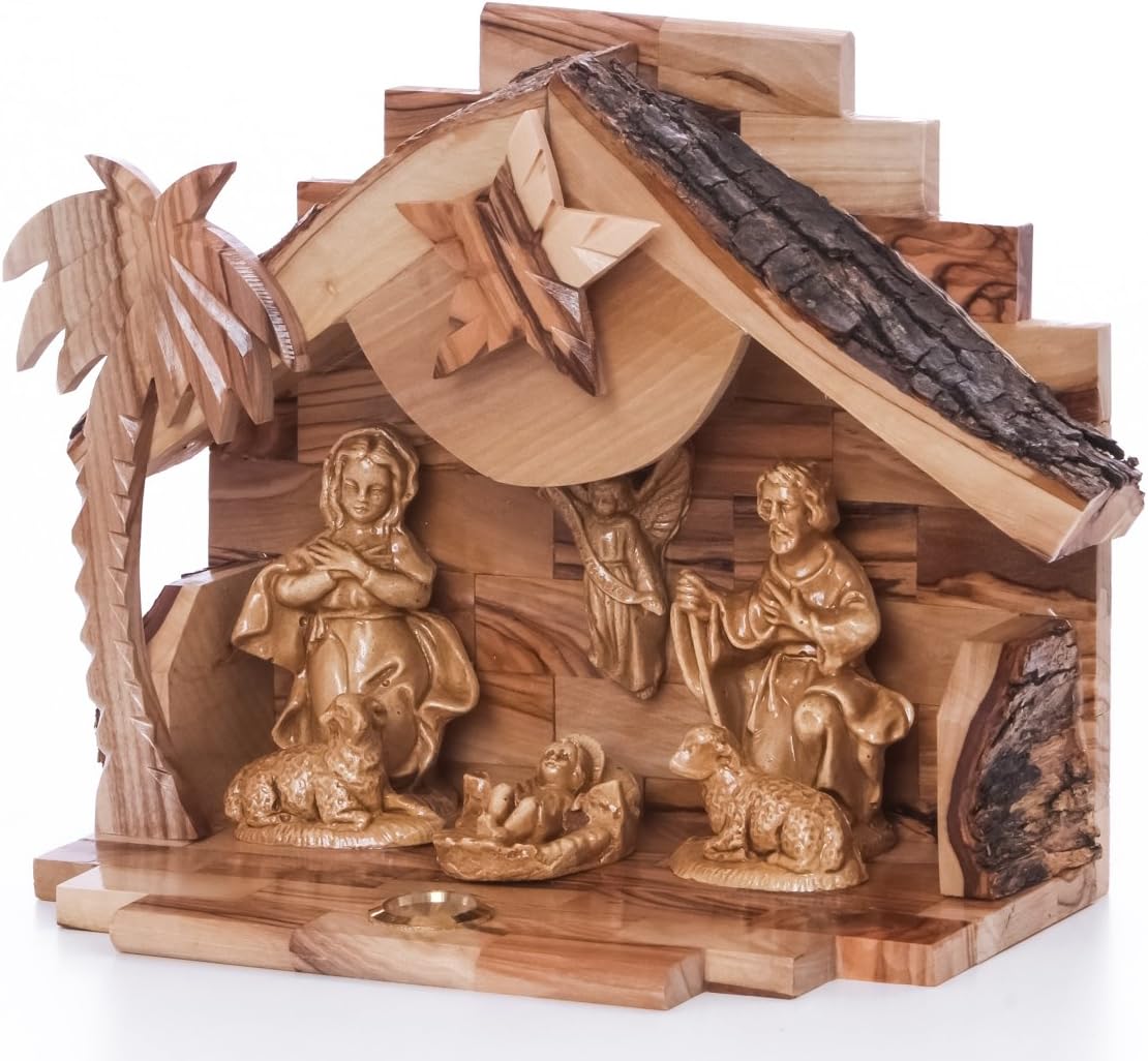 Amazon Com Zuluf Olive Wood Nativity With Ceramic Figures Nat021