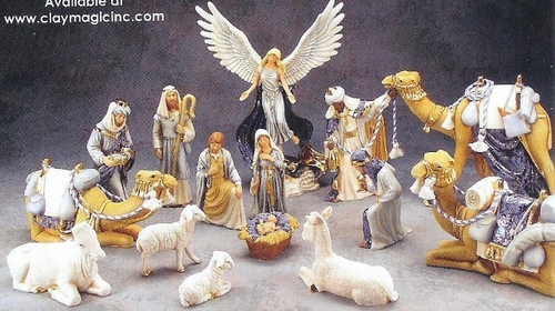 Nativity Set 16 Pc Clay Magic Ceramic Bisque Upaint
