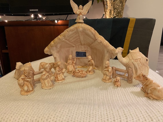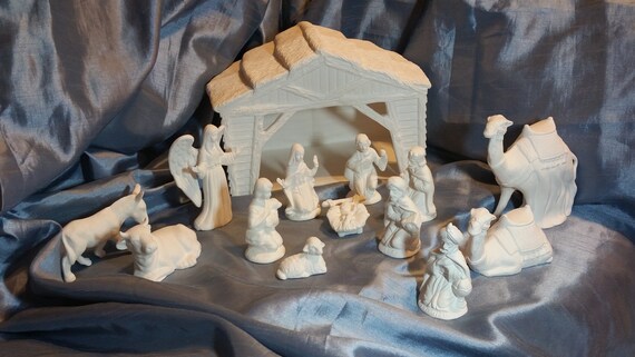 Unpainted 13 Piece Ceramic Nativity Set Stable Sold Etsy