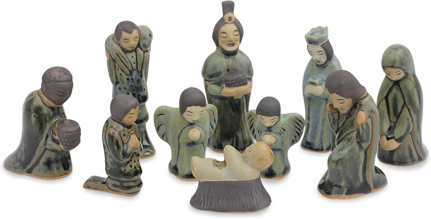 Amazon Com Novica 218128 Iridescent Holy Birth 10 Piece Celadon