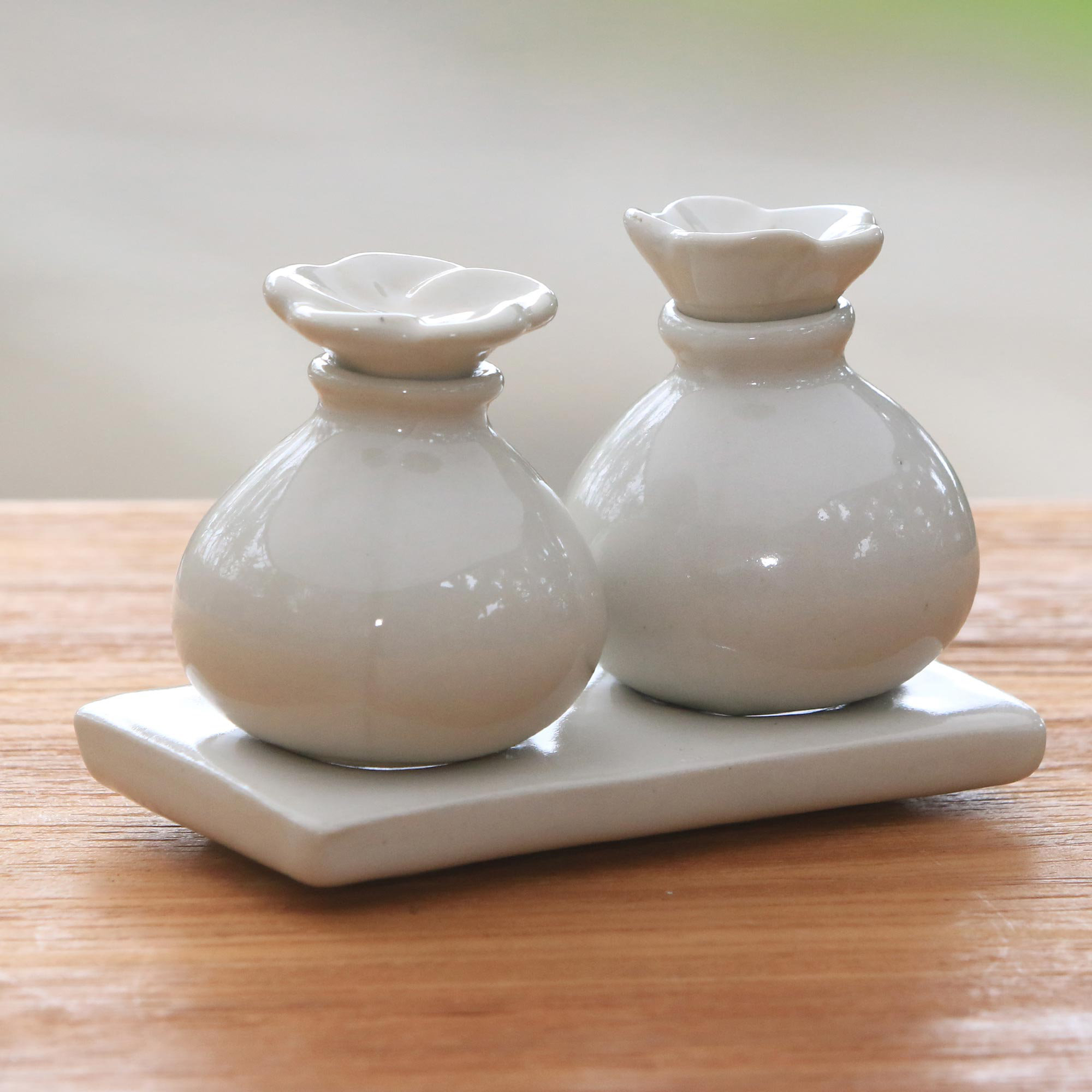 Ceramic Salt And Pepper Oil Bottle Set Porcelain Olive Soy