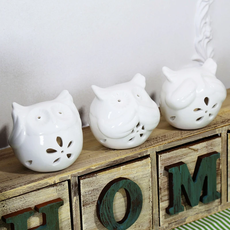 Table Decoration Ceramic Owl Aroma Fragrance Oil Burner For Candle
