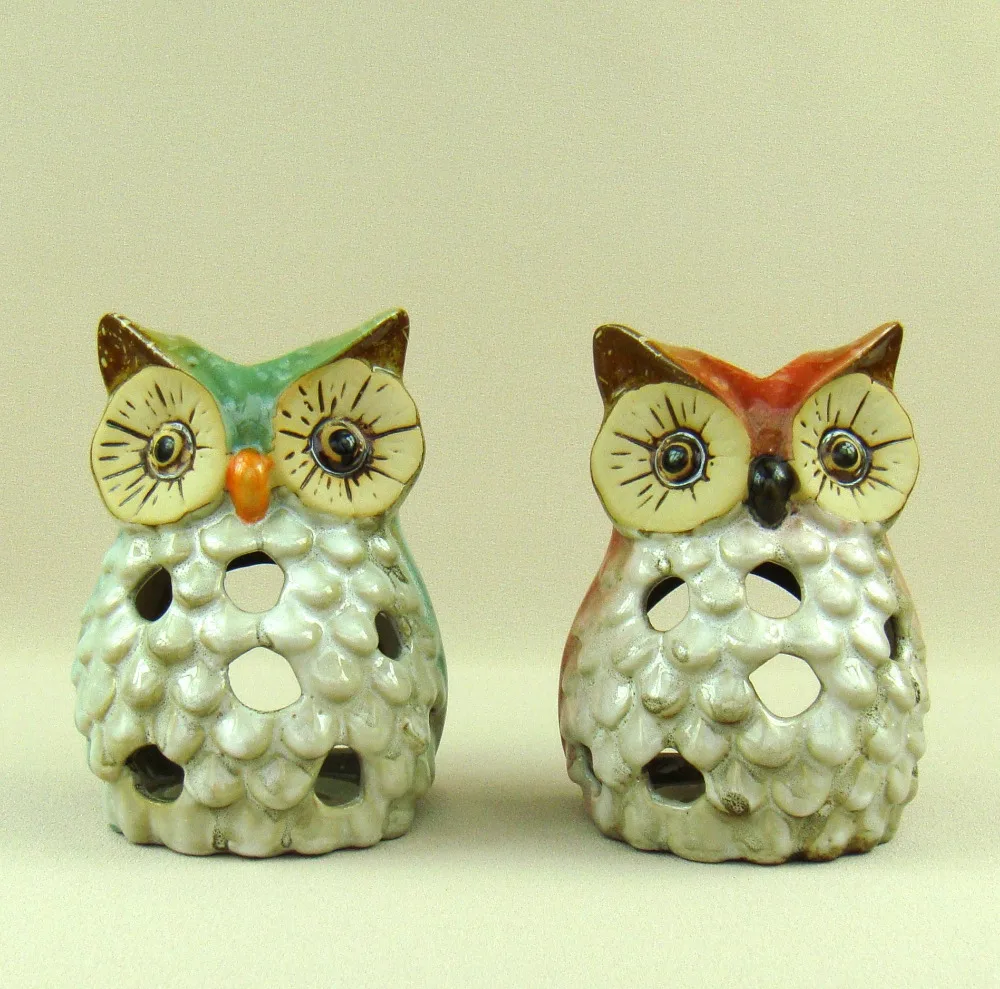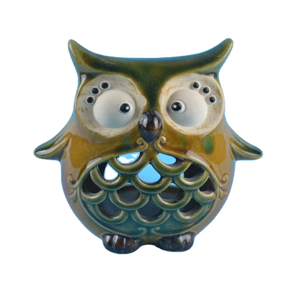 China Colored Hollow Out Ceramic Owl Candle Holder China Owl