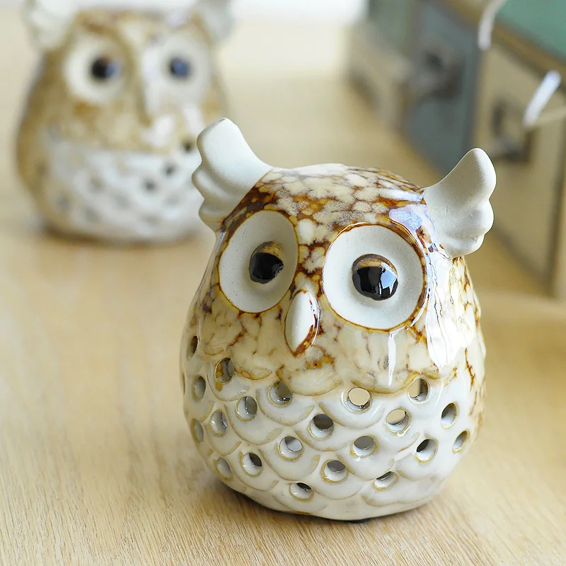 Porcelain Owl Figurine Candle Holder Ornamental Ceramics Nighthawk