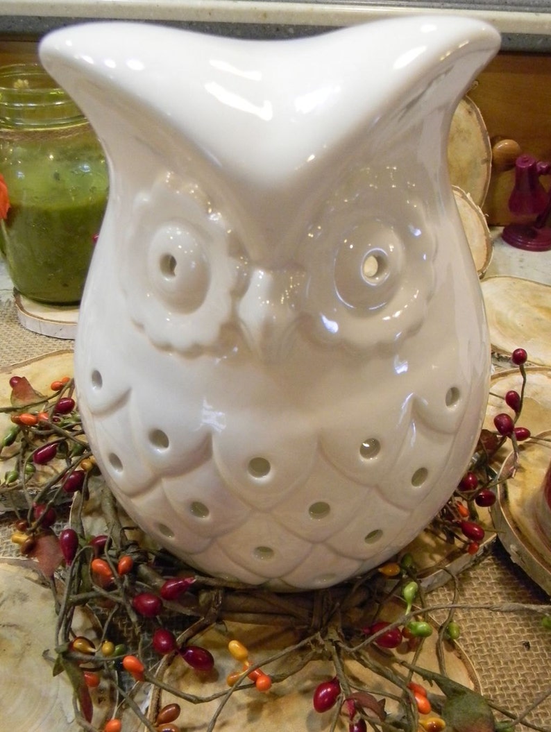 White Ceramic Owl Candle Holder Wax Oil Burner