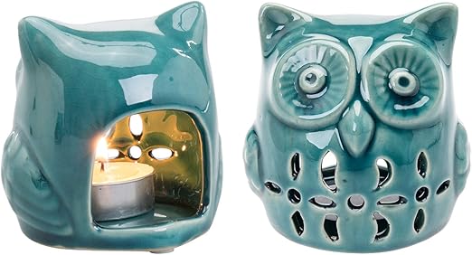 Amazon Com Mygift Teal Ceramic Owl Design Decorative Tealight