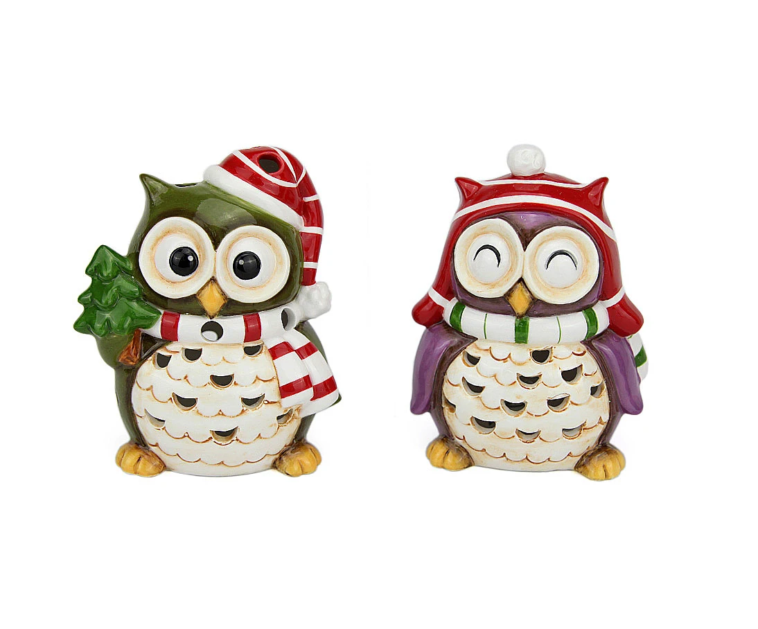 Adorable Ceramic Christmas Owl Tea Light Candle Holder Ornament