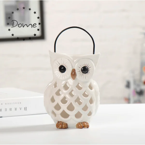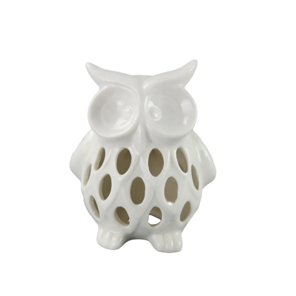 Cheap White Ceramic Hollow Carved Candle Holders Owl Candle Jars