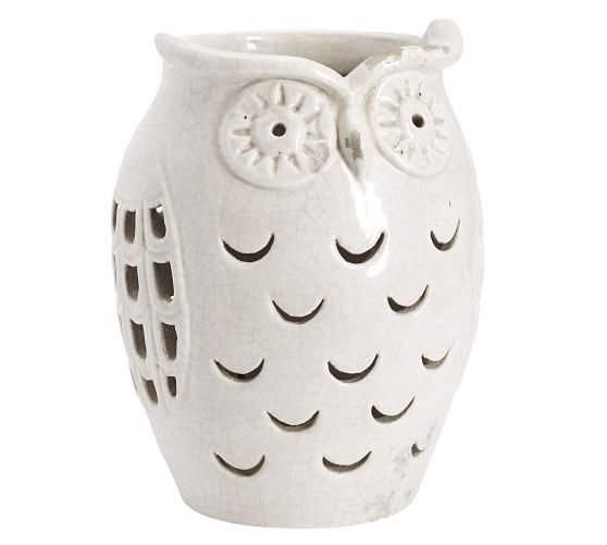 Ceramic Owl Hurricane Candle Holder Pottery Barn