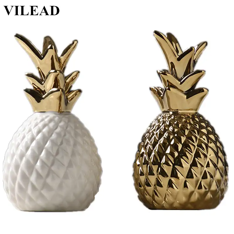 Vilead 18cm Gold White Ceramic Pineapple Decorative Figurine Fruit