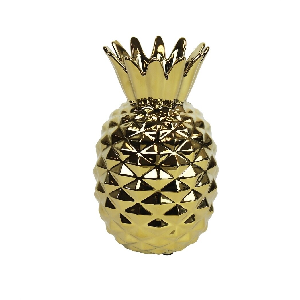 Ceramic Pineapple Decor With Gold Top Small Tropical