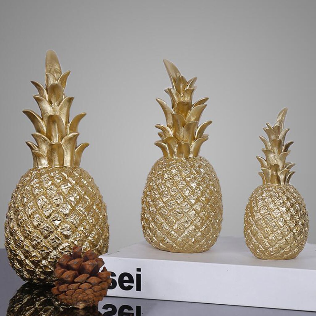 3x Resin Ceramic Pineapple Ornaments Luxury Gold Decorations For