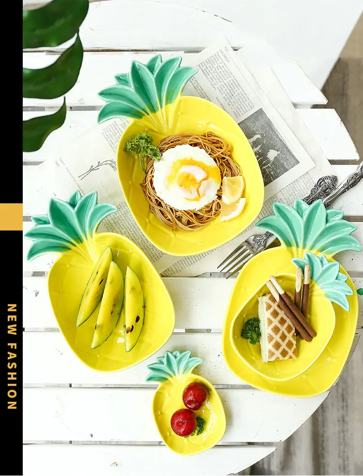 Nordic Style Yellow Ceramic Pineapple Jewelry Plate Bowl For