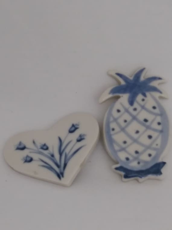 Pineapple Heart Flowers Refrigerator Magnets Set Of 2 Blue Etsy