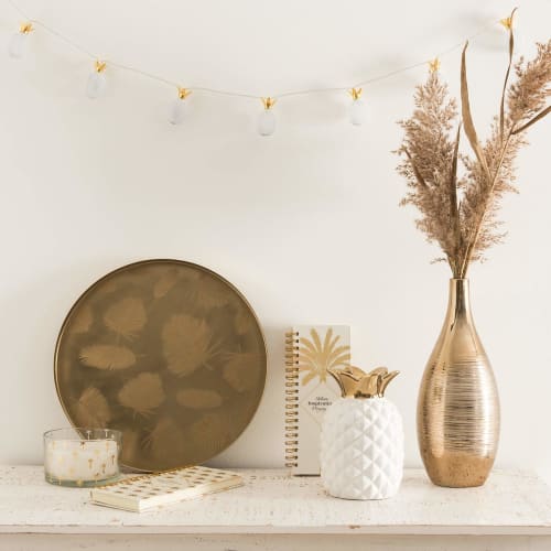 White And Gold Ceramic Pineapple Vase H 20 Maisons Du Monde