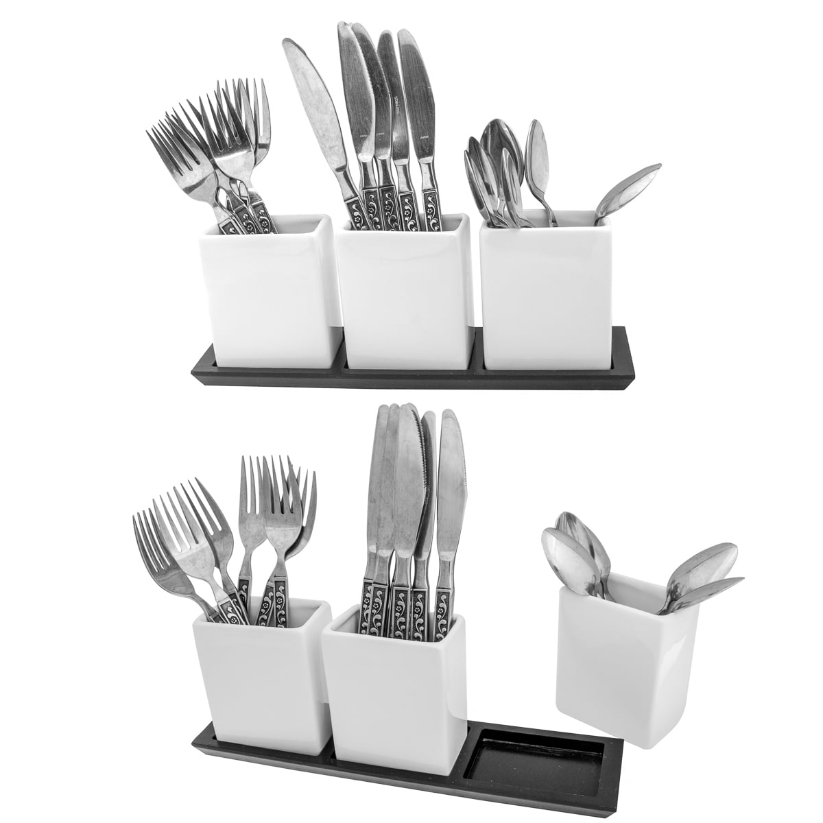Amazon Com Attractive White Ceramic Flatware Caddy Organizer Set