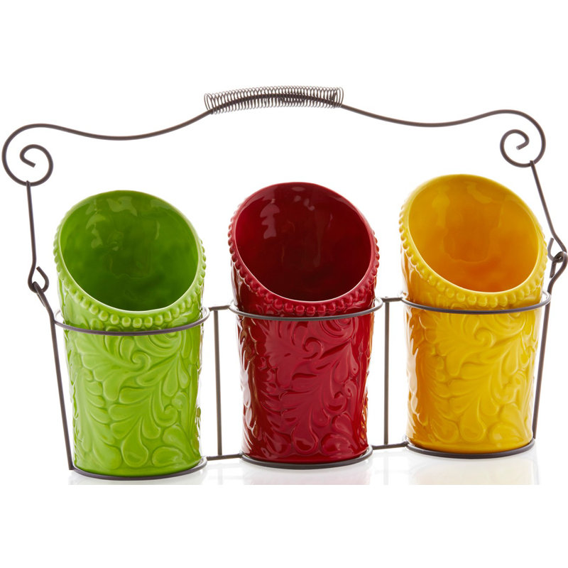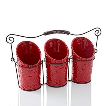 1 Wire Caddy 3 Ceramic Utensil Holders Red 4 Dia X 7 H Each