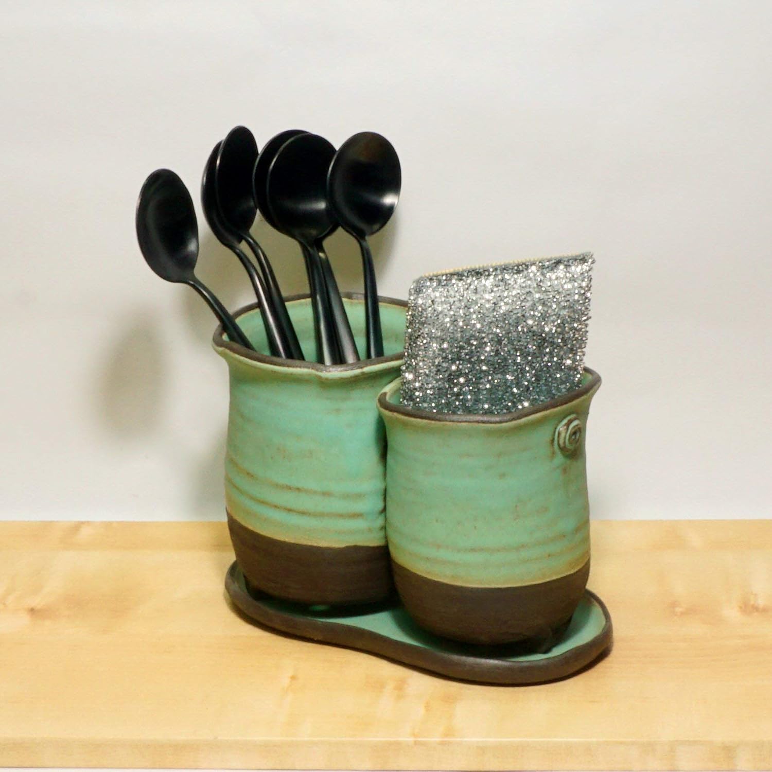 Amazon Com Cutlery Holder Ceramic Silverware Container Sponge