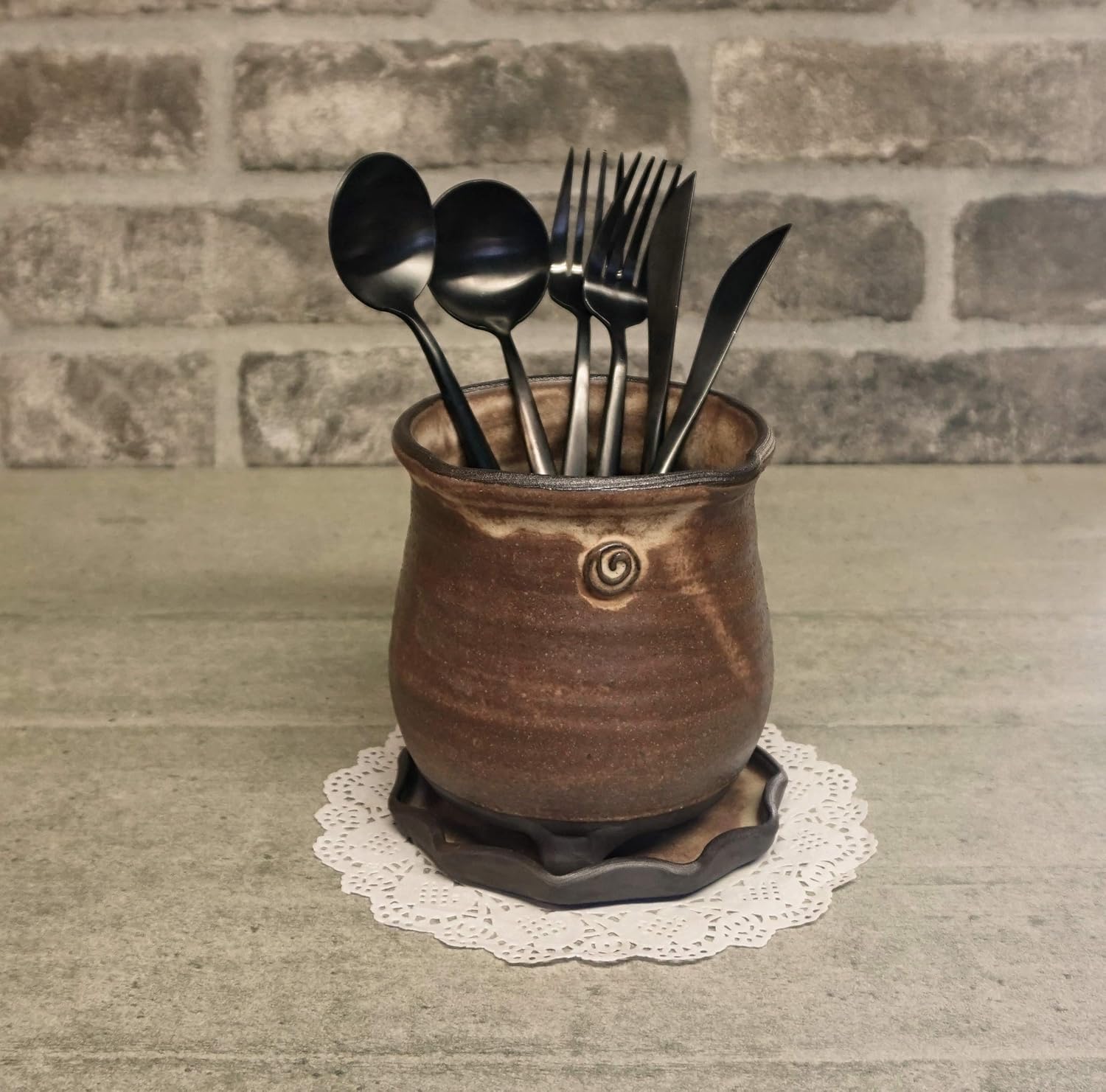 Ceramic Utensil Holder Silverware Pot Pottery Utensil Caddy Etsy