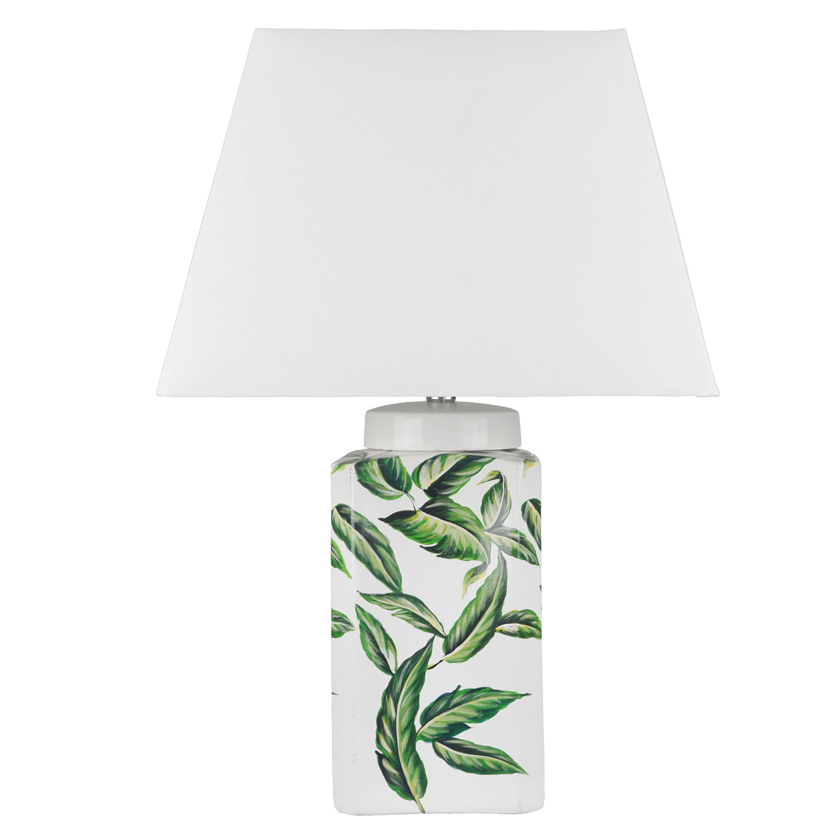 Urn Ceramic Table Lamp With Green Palm Leaf Design