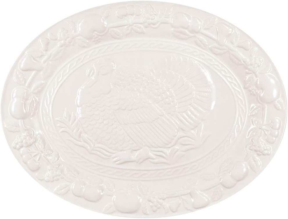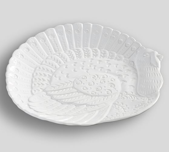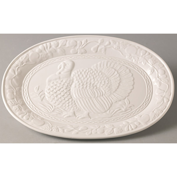 Ceramic Turkey Platter Classics White Embossed Housewares
