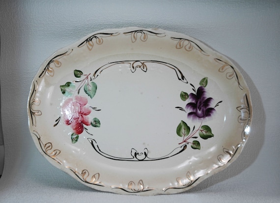 Large Vintage Turkey Platter Big Antique Ceramic Dish Etsy