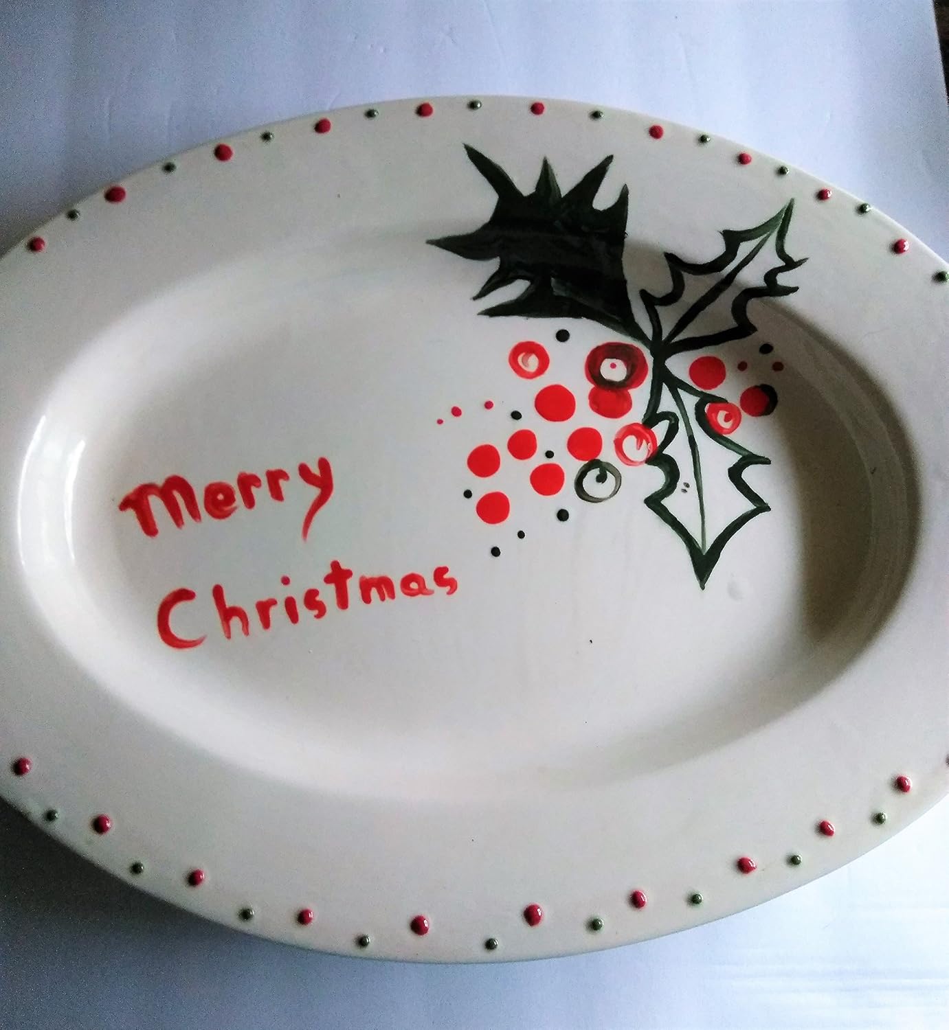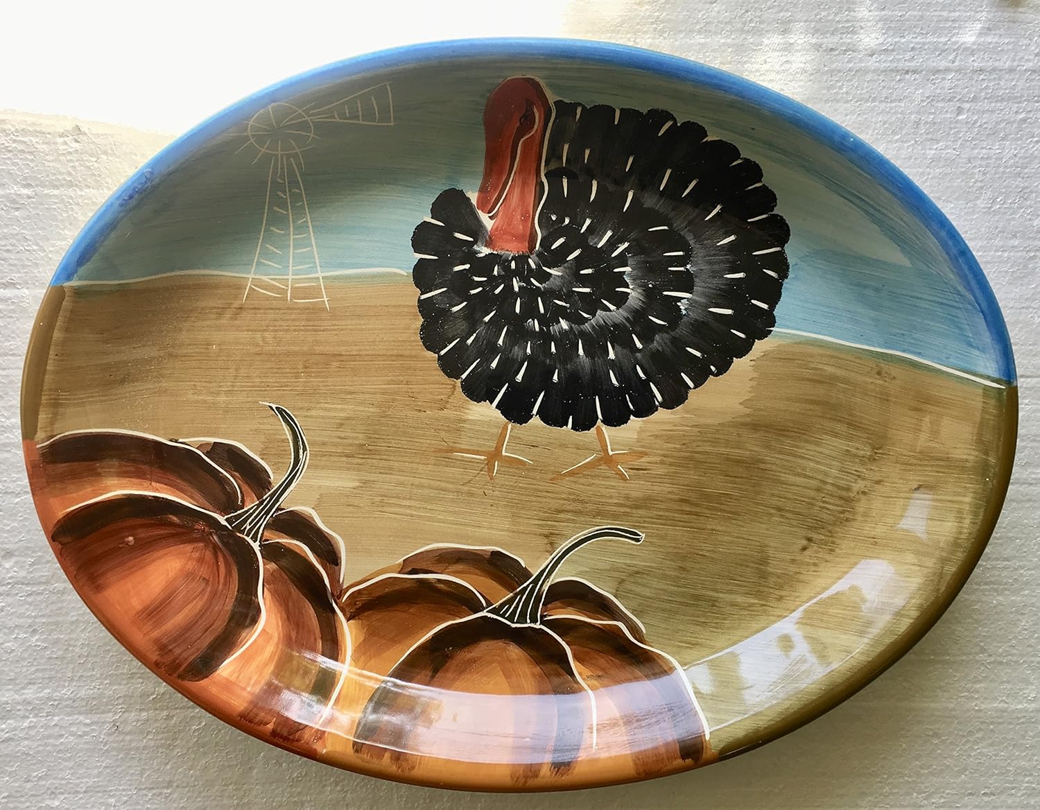 Amazon Com Hand Painted Ceramic Christmas Turkey Platter 20 X 15