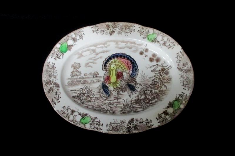Vintage Oval Transferware Ceramic Turkey Platter Thanksgiving