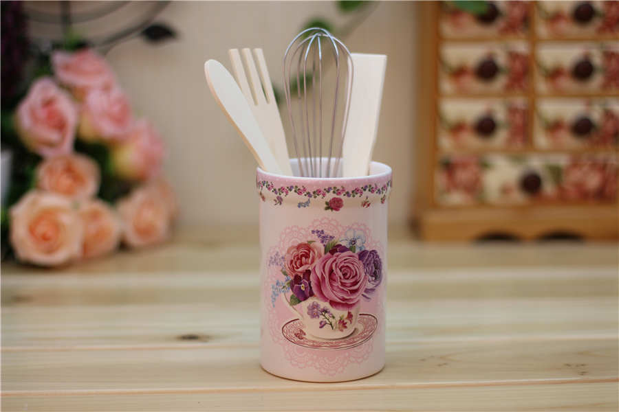 Romantic Rose Ceramic Utensil Holder For Kitchenwatzin