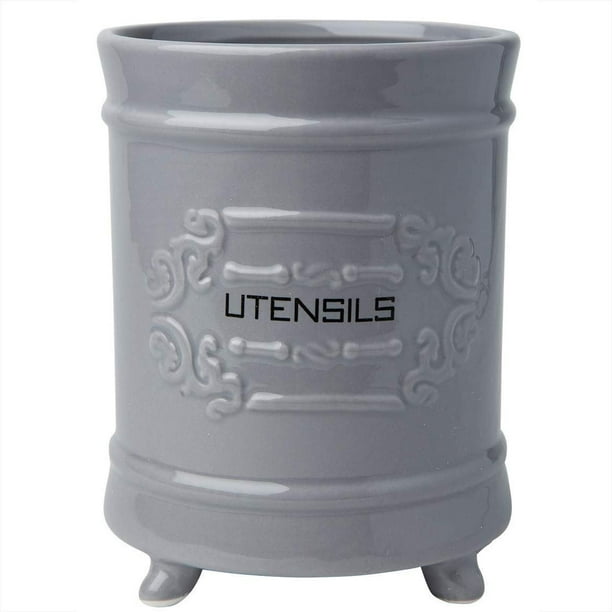 French Grey Ceramic Utensil Holder Vintage Style Kitchen Utensil
