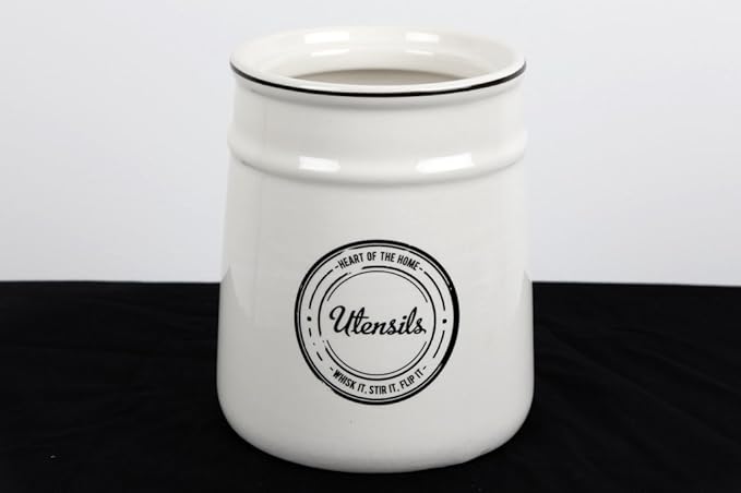 Heart Of The Home Ivory White And Black Ceramic Utensil Jar With