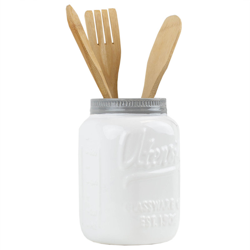 Buy Off White Ceramic Mason Jar Kitchen Utensil Holder By Zallzo