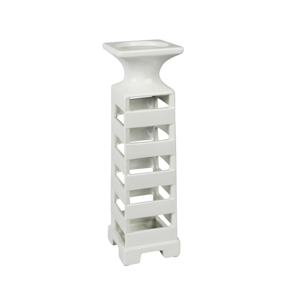 Sagebrook Home 16 In White Slat Ceramic Candle Holder 12605 01