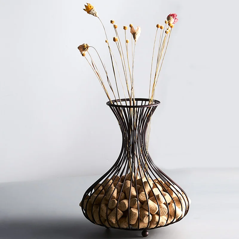 Metal Vase Wine Cork Holder Living Room Table Flower Arrangement
