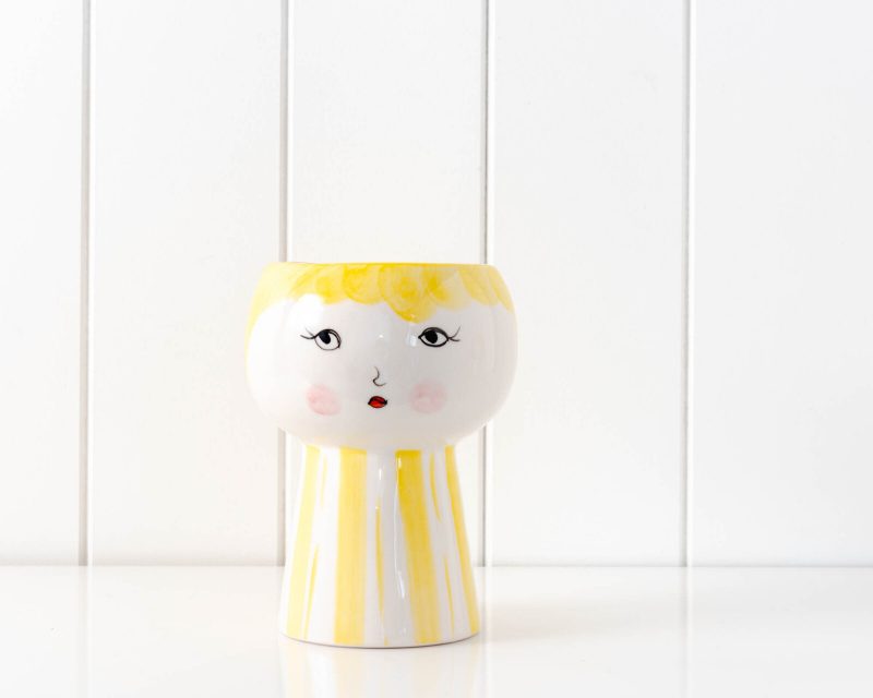 Yellow Girl Face Vase Ceramic Pot Planter 15cm Dalisay