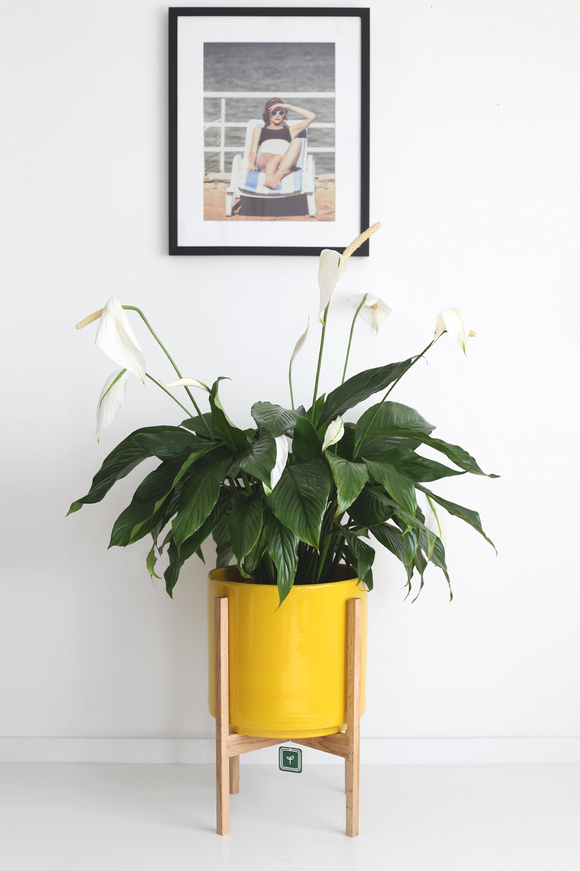 Mid Century Modern Planter With Wood Plant Stand Extra Large