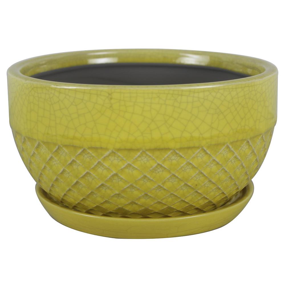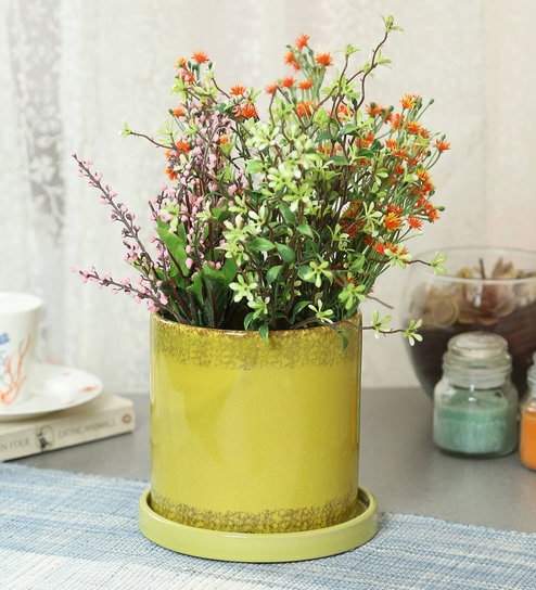 Ceramic Plant Pot With Yellow Saucer Buy Plant Pot Flower Pot