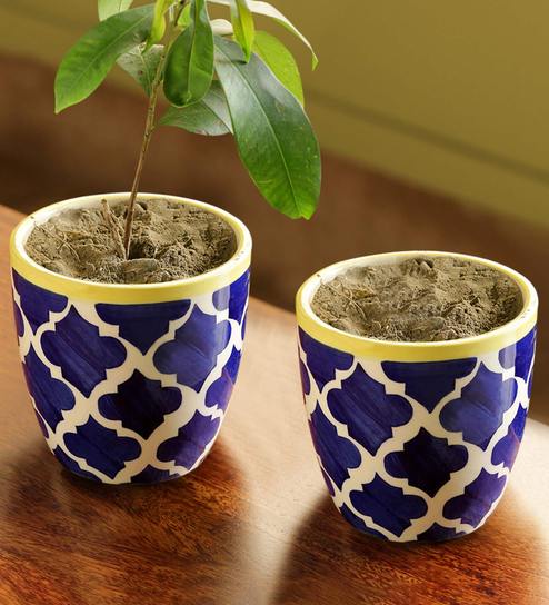 Buy Yellow Blue Ceramic The Two Morocco Pod Handpainted Planter