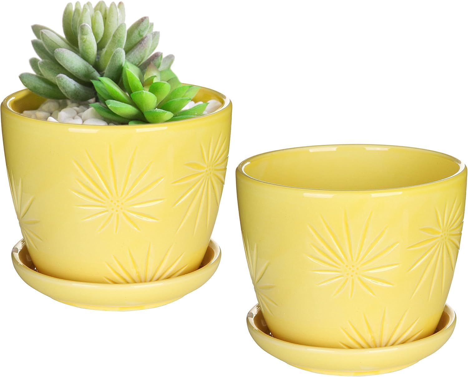 Yellow Sunburst Ceramic Flower Pots Set Of 2 Mygift