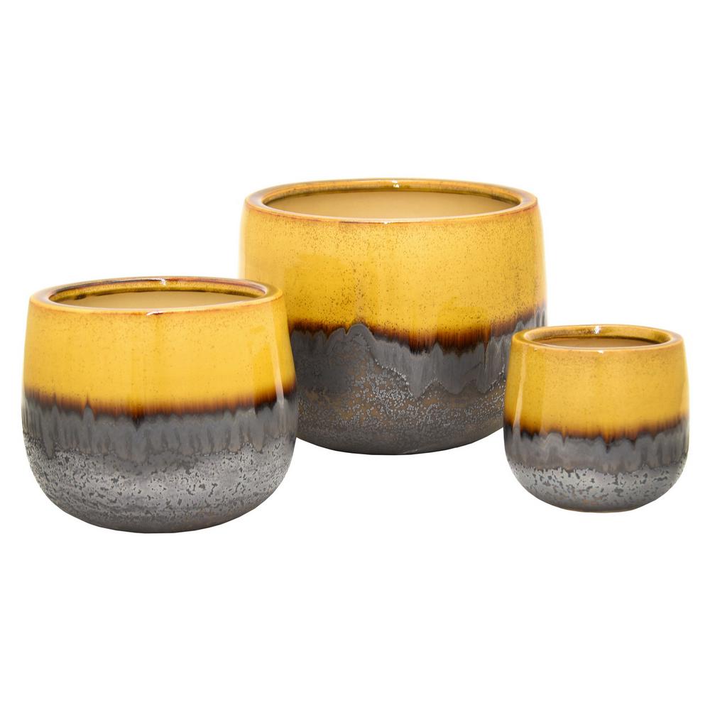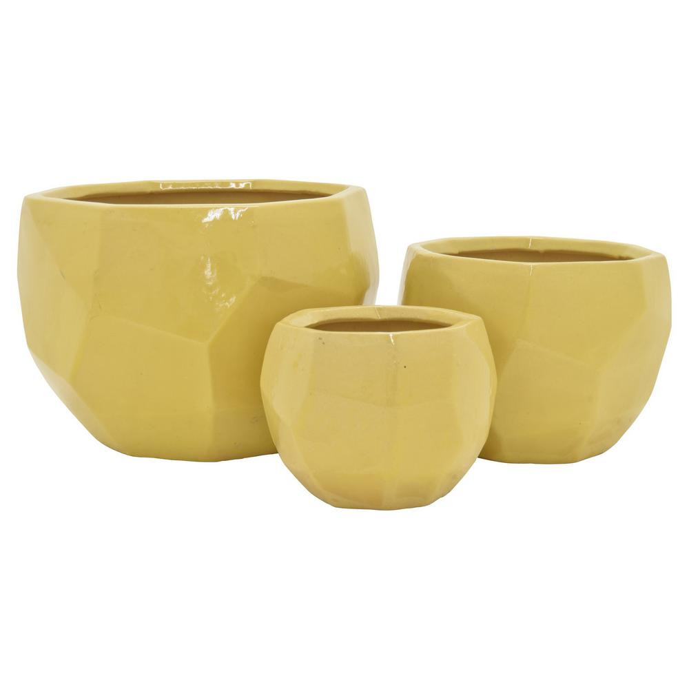 Amazon Com Set Of 3 Yellow Ceramic Flower Pot Green Plant