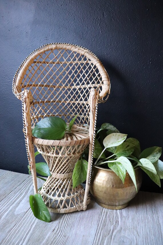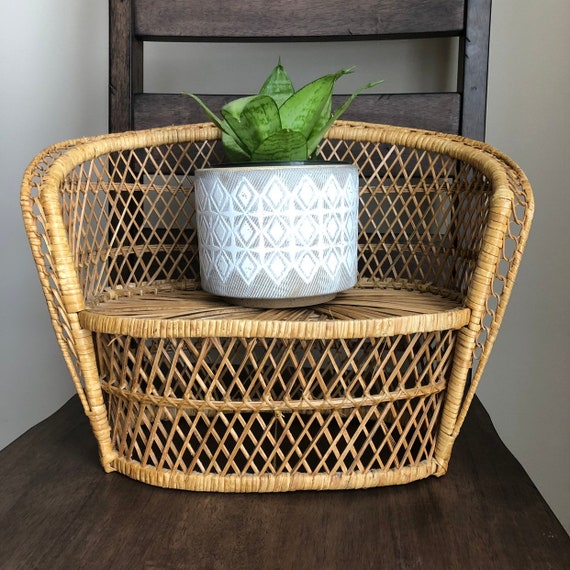 Vintage Mini Peacock Chair Wicker Chair Plant Stand Etsy
