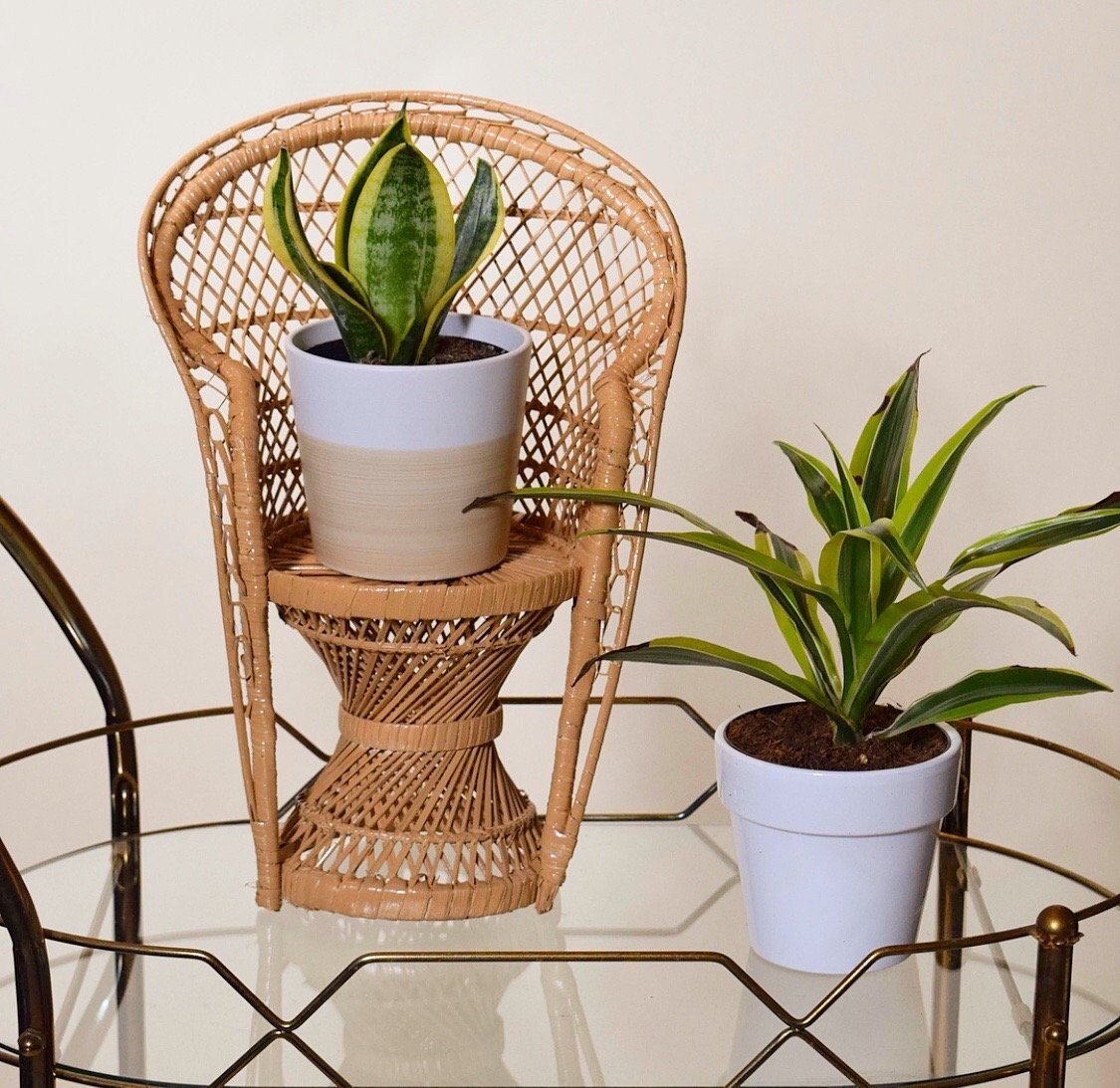 Vintage Miniature Peacock Chair Plant Stand Retro Boho Inland