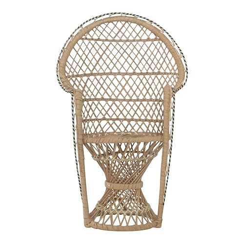 Wicker Rattan Miniature Peacock Fan Back Doll Chair Plant Stand
