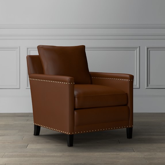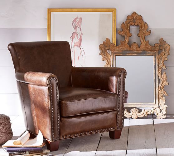 Irving Roll Arm Leather Armchair With Nailheads Pottery Barn