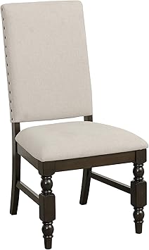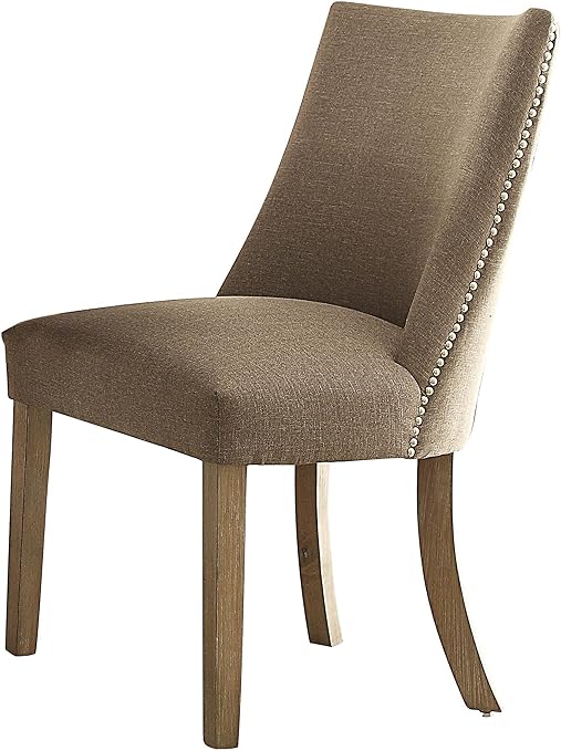 Amazon Com Homelegance Fabric Upholstered Side Chair With Nailheads Brown Set Of 2 Kitchen Dining
