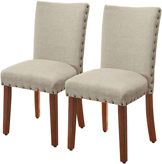 Amazon Com Homepop Parsons Classic Dining Chair With Nailhead Trim Set Of 2 Natural Linen Chairs