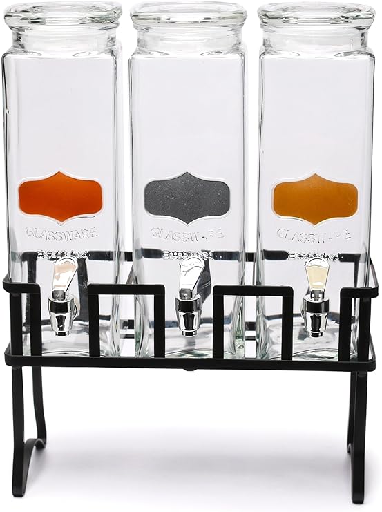 Ilyapa Outdoor Glass Beverage Dispenser With Sturdy Metal Base